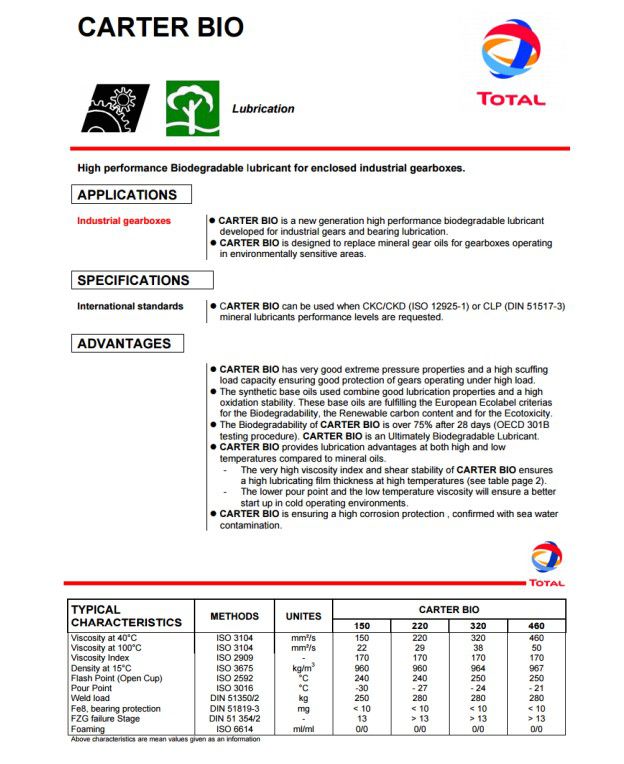 道达尔润滑油 > 齿轮油 > TOTAL CARTER BIO320|TOTAL CARTER BIO 320